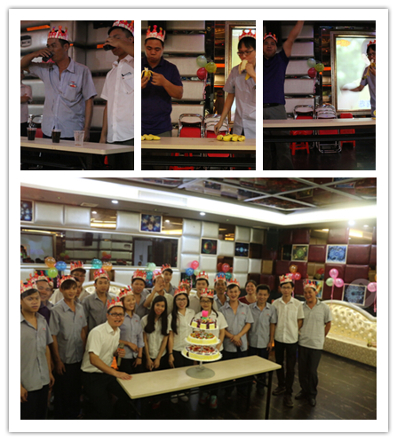 與此同時,佛山南海賽邦也在一樓培訓室舉行9月份生日會,生日會的場地于當天下午16點前早就布置好了,周圍沾滿氣球,現(xiàn)場氣氛熱烈。當月的壽星們同各部門人員聚齊在一起,發(fā)生日卡,收集員工生日祝福,壽星許愿,吹蠟燭,唱生日歌,切蛋糕。大家其樂融融,幸??M繞其中,也增加了員工的歸宿感。